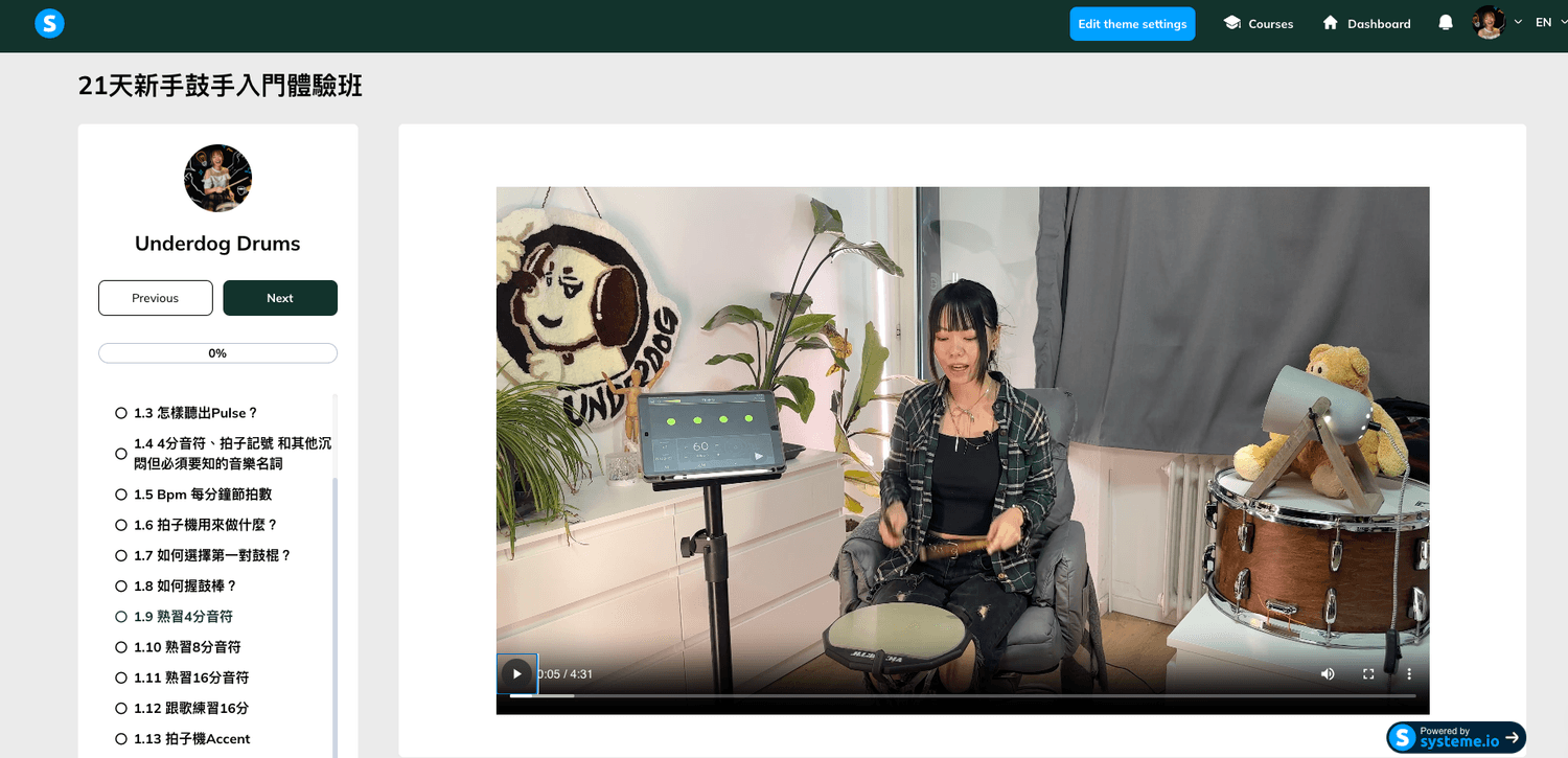 30+ 教學影片 (代替坊間4-8課實體鼓班)
